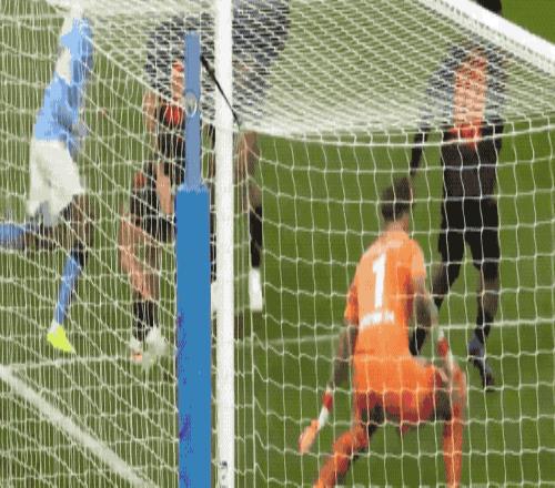 场边,哈兰德也开始热身,但还没等到哈兰德登场,比分已经变成0-2了,第54分钟,格里马尔多45度传中,希克力压阿克,头槌破门。