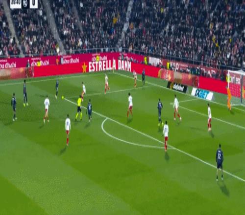 第45分钟,打破僵局,欧纳希劲射得分,皇马0-1