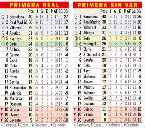 而在莱万特与贝蒂斯的对决中,阿尔蒂米拉的进球因队友在先前的进攻中对伊万·罗梅罗犯规,被VAR取消。