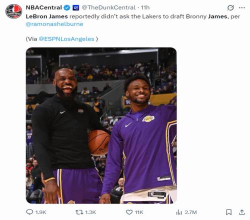 北京时间1月28日,41岁的勒布朗-詹姆斯又被推上风口浪尖,因为他不满联盟的65场评奖规则,也因为蕾梦娜-谢尔伯恩透露LBJ从未让湖人选中布朗尼,勒布朗依旧是NBA话题第一人。