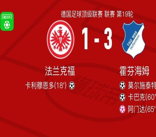霍芬海姆31逆转法兰克福,卡巴克破门,莫尔施泰特建功